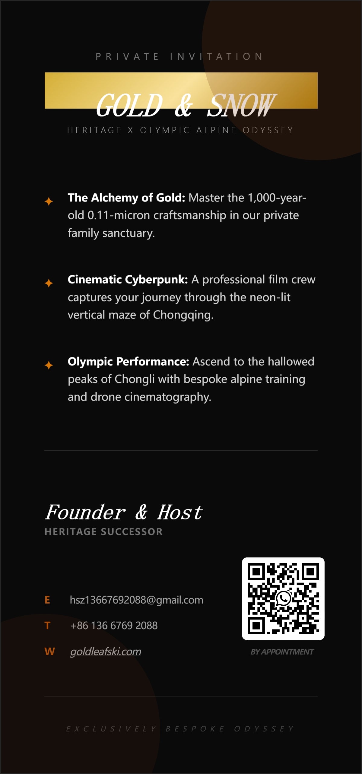 Curated and hosted by the descendants of China’s National Gold Leaf lineage, this 8-day experience spans 2,000 kilometers—connecting the 1,000-year craftsmanship of Nanjing, the cyberpunk verticality of Chongqing, and the hallowed Olympic slopes of Chongli.